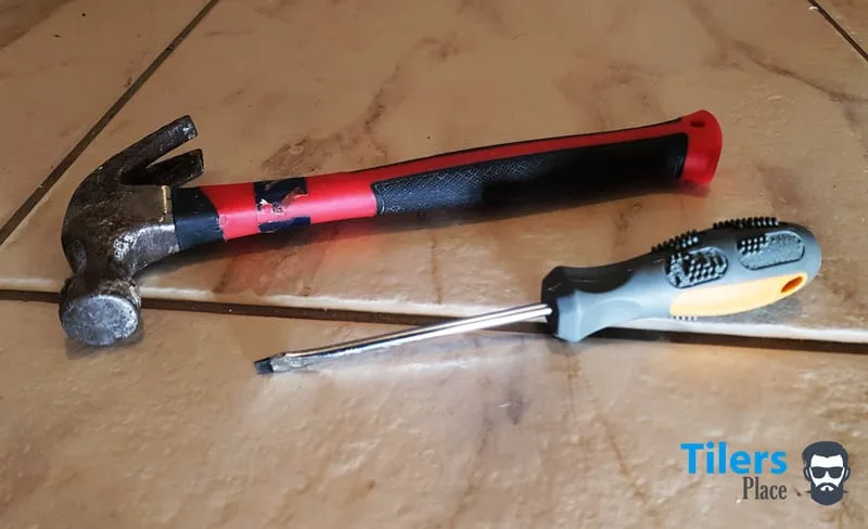 I wouldn’t use hammer and screwdriver but I used screwdriver since I had <0.5mm grout from another tiler virtually groutless. So screwdriver for surface scraping did the job with only 1-2 minor chips.